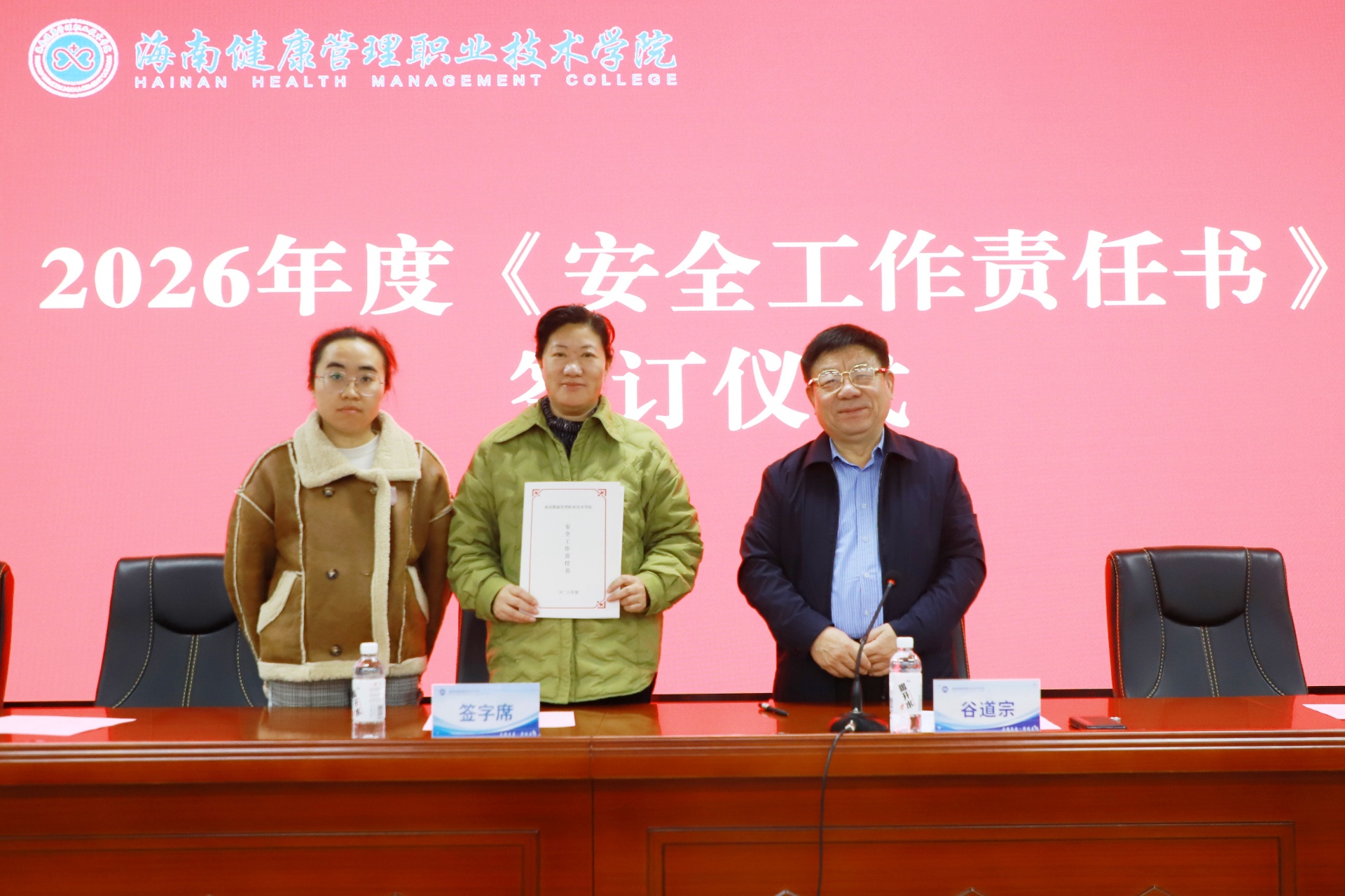 会上,学院与各处室、系部负责人签订2026年度《安全工作责任书》,层层压实主体责任,筑牢校园安全防线,为学院高质量发展奠定坚实基础。